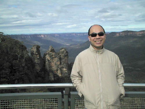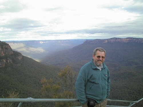 Am Montag hat mich Oscar mit dem Auto abgeholt und wir sind in die Blue Mountains gefahren. Sie liegen etwa zwei Stunden Autofahrt von Sydney entfernt und sind gut ueber die Autobahn zu erreichen. Den Namen haben die Berge von dem blauen Dunst, der durch die Sonnenreflektion auf den Oeltroepfchen, die die Gum Trees aussondern, entsteht.