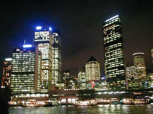 An der naechsten Hafenmole habe ich dann an Harry’s beruehmtem Cafe auf Raedern einen Imbiss eingenommen, d.h. eine australische Fleischpastete mit Kartoffel- und Erbsenpuerree, um dann noch etwas durch das „naechtliche“ Sydney zu schlendern, bevor ich mit der Bahn zurueck nach Belmore gefahren bin.